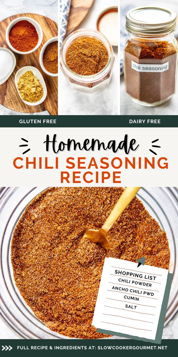 Chili seasoning is used in authentic chili dishes with ground beef or turkey and lots of tomatoes and sauce. The flavors in this blend can also work in dips, sprinkled over veggies or potatoes, or mixed into other types of soups and stews.