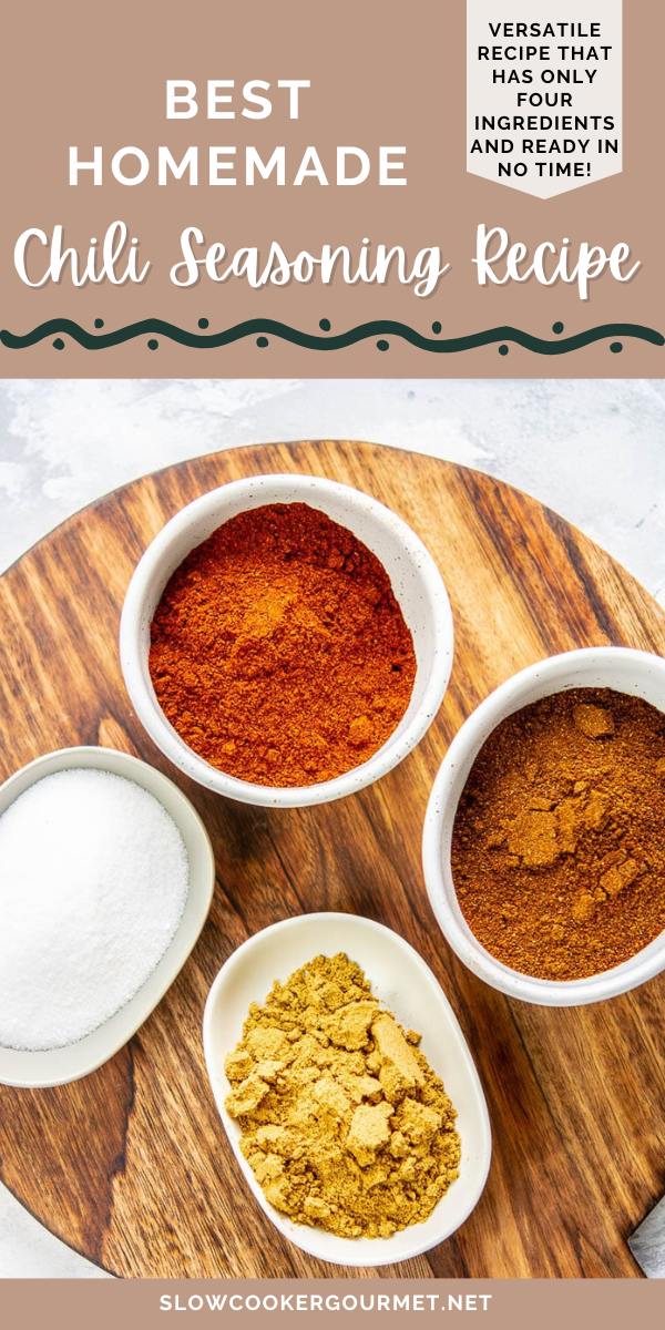 Just 4 ingredients are all you need for a basic, yet flavorful chili seasoning recipe that can be used for countless dishes!