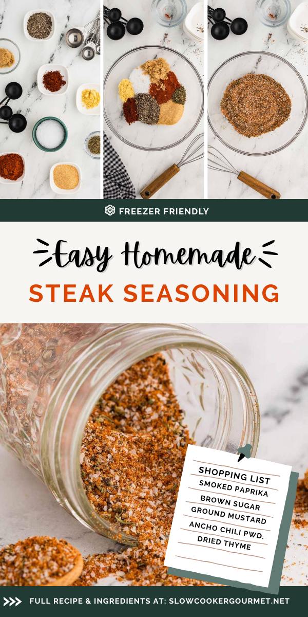 Looking for a steakhouse-quality seasoning that will hit the mark on flavors every time? This homemade steak seasoning is the solution. Not only does this create super-flavorful steak, but it will also work with lots of different meats!