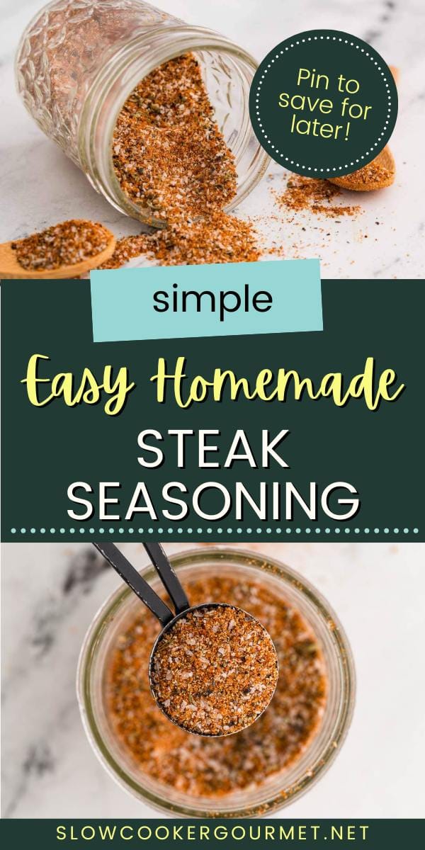 My steak seasoning recipe is a more all-purpose blend. It has ancho chili powder and smoked paprika which bring a deeper, earthy flavor with a hint of smokiness. The easy recipe works with lots of different beef recipes!