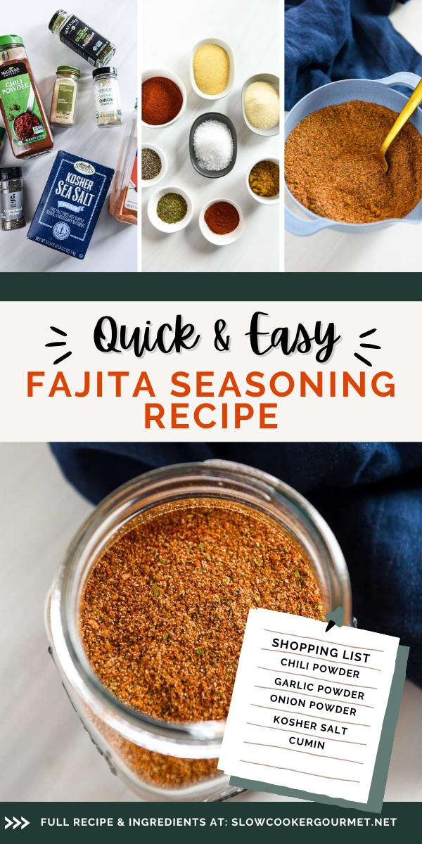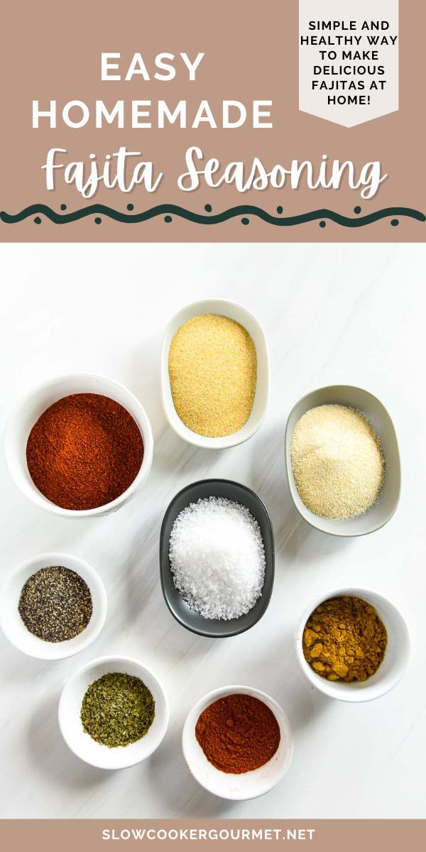 Make your own fajita seasoning mix for your next plate of sizzling hot fajitas at home! Homemade seasonings are one of the simplest and healthiest ways to make delicious, restaurant-worthy meals in your own kitchen without any compromise on taste. This quick and easy recipe takes only a few minutes to mix and store!