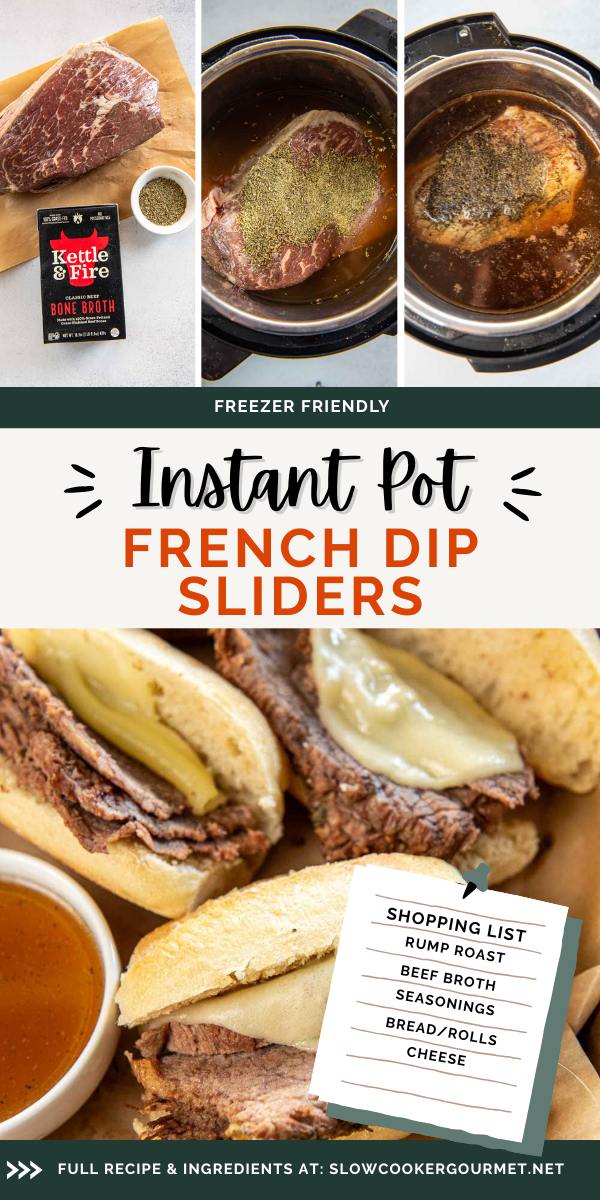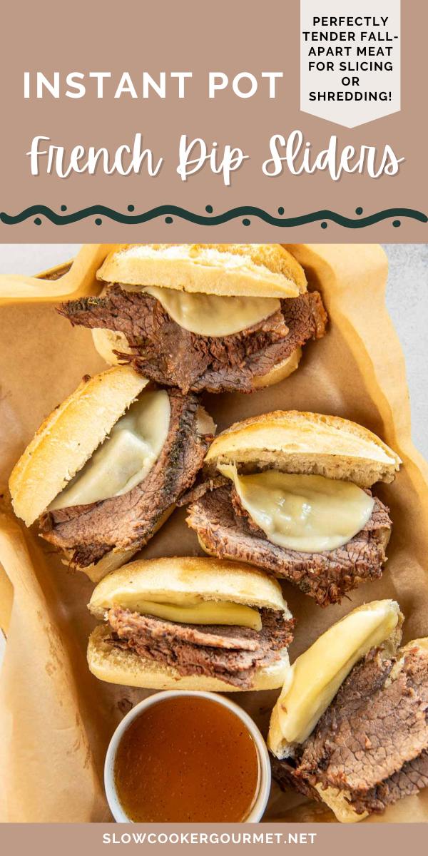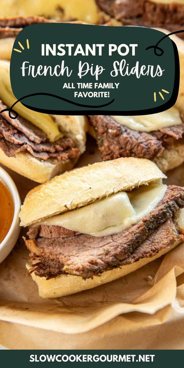 While I could sing the praises of the slow cooker all day long, sometimes you need to make something in a little less time! Since the rump roast in French dip sliders requires low and slow braising, you need several hours of oven or slow cooking to tenderize it fully. Here’s where the Instant Pot comes in handy.