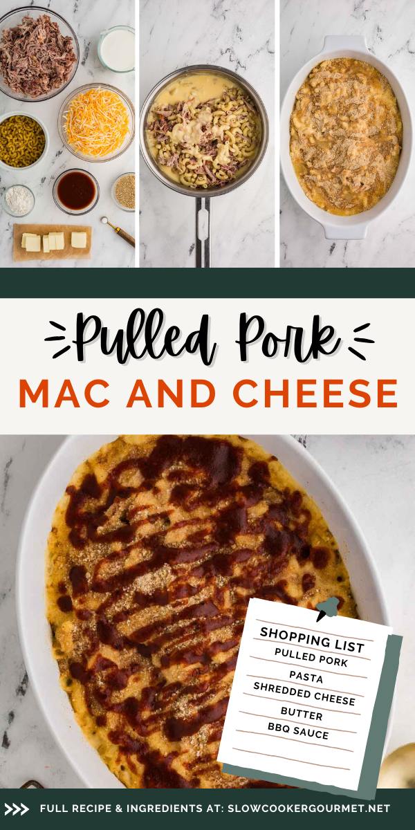 - Since you’re utilizing leftovers from my famous pulled pork, this mac and cheese dish really doesn’t take long at all to assemble and bake! It’s easy enough for a weeknight, and it’s the perfect comfort food to gather everyone around the table.