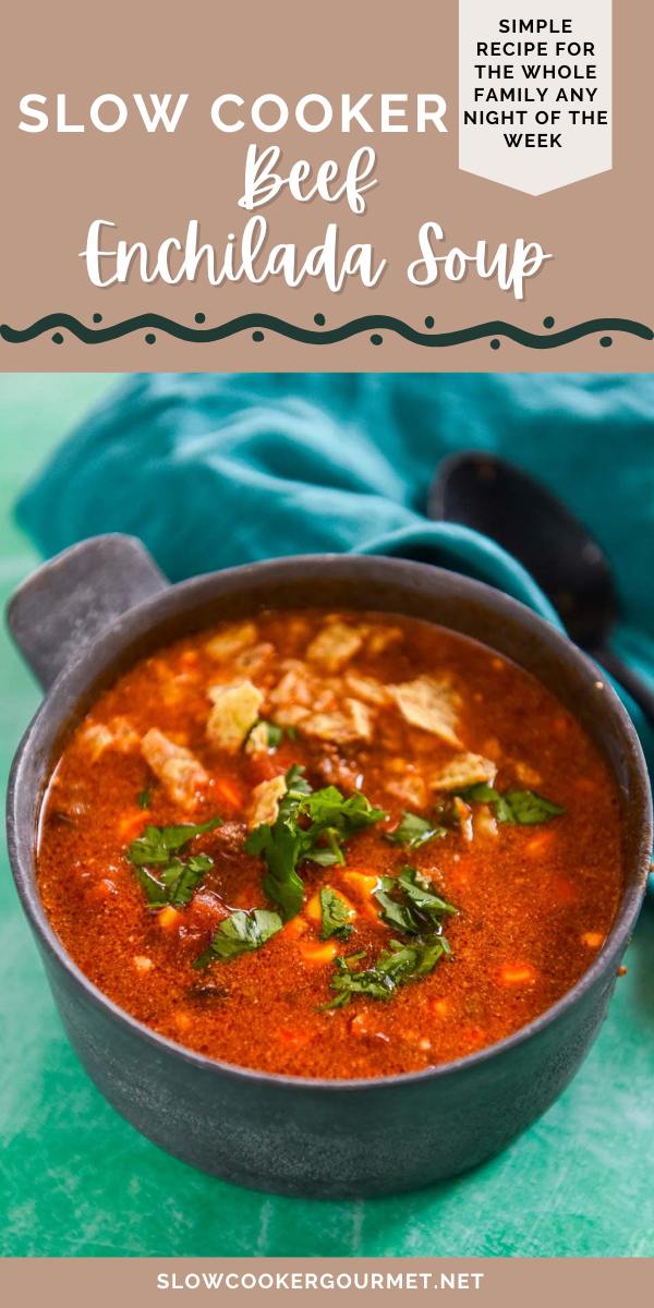 Also, this recipe is SO simple. Brown the ground beef right before cooking or anytime in advance and toss everything in the slow cooker! Typically, making enchiladas from scratch requires some time for prep and assembly, and this soup alleviates that for a simple meal where the slow cooker does the work for you.