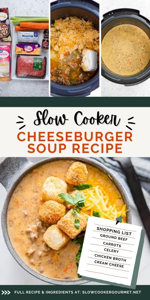 - Next, add the remaining broth to the slow cooker along with diced carrots and celery, burger seasoning, shredded cheese, cream cheese, and half and half.
