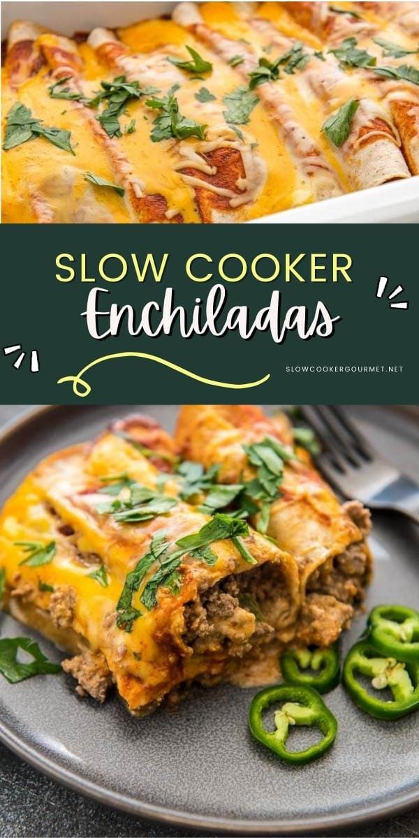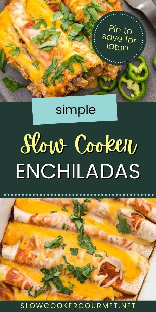 If you love meals that are super easy, totally tasty and use only a few simple ingredients then you are in luck! These slow cooker enchiladas come together in minutes for a delicious dinner the whole family will enjoy!