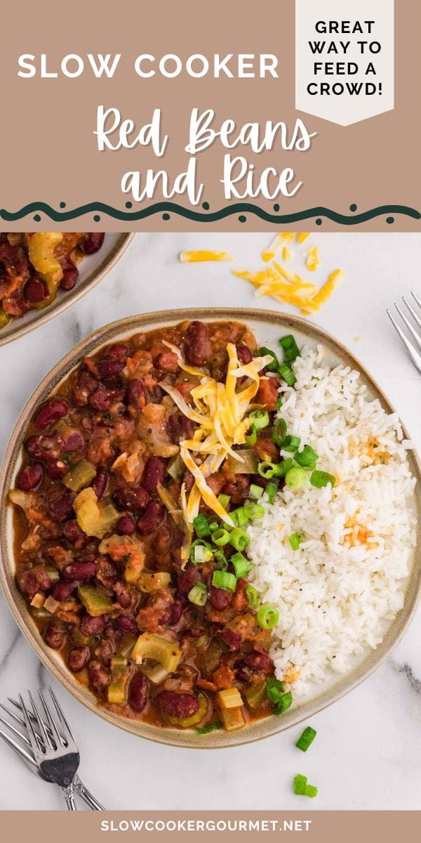 Slow cooker red beans and rice is a hearty, savory meal that feeds a crowd! Canned beans make the prep convenient while the slow cooker delivers authentic Southern flavor. With just a hint of smoky spice, the red beans are richly flavored, and the leftovers are just as excellent!