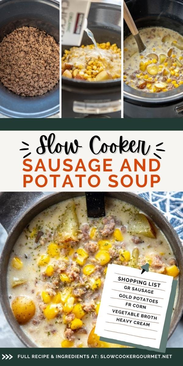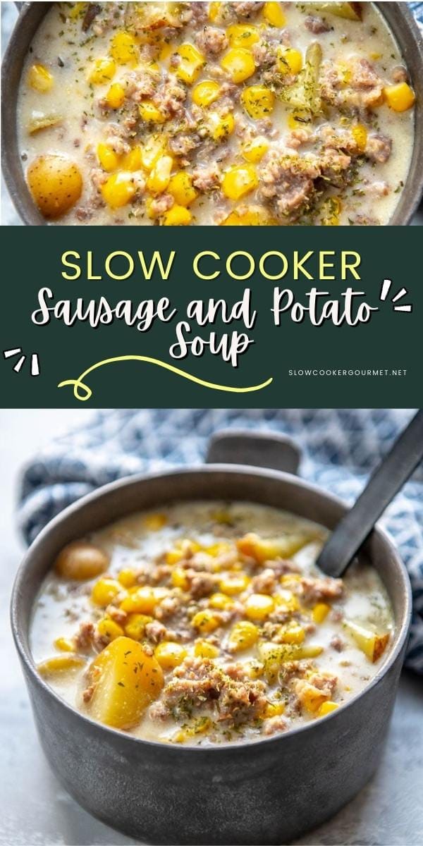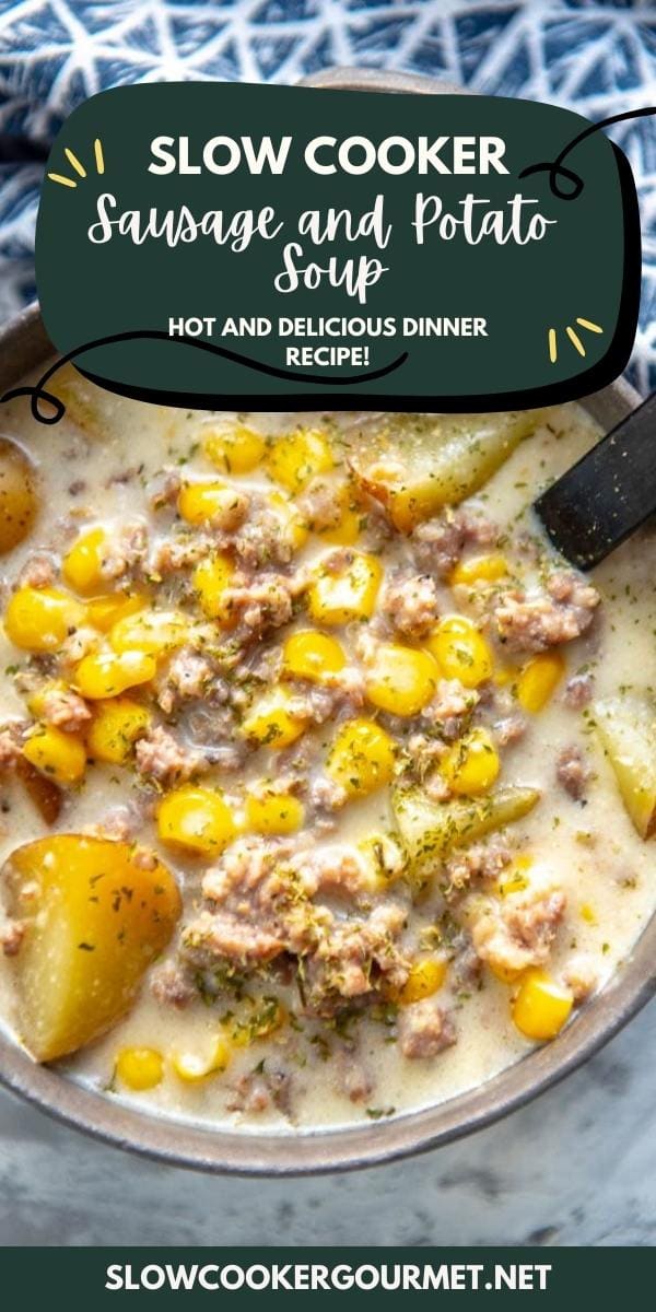 This is a take on my very favorite Slow Cooker Corn and Potato Chowder but it goes the extra mile by adding sausage.