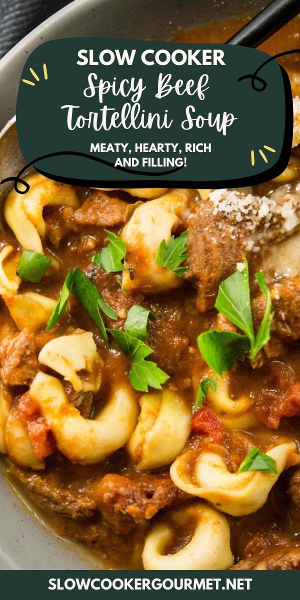Slow Cooker Spicy Beef Tortellini Soup