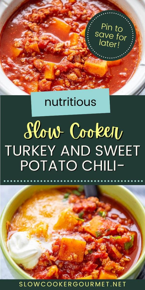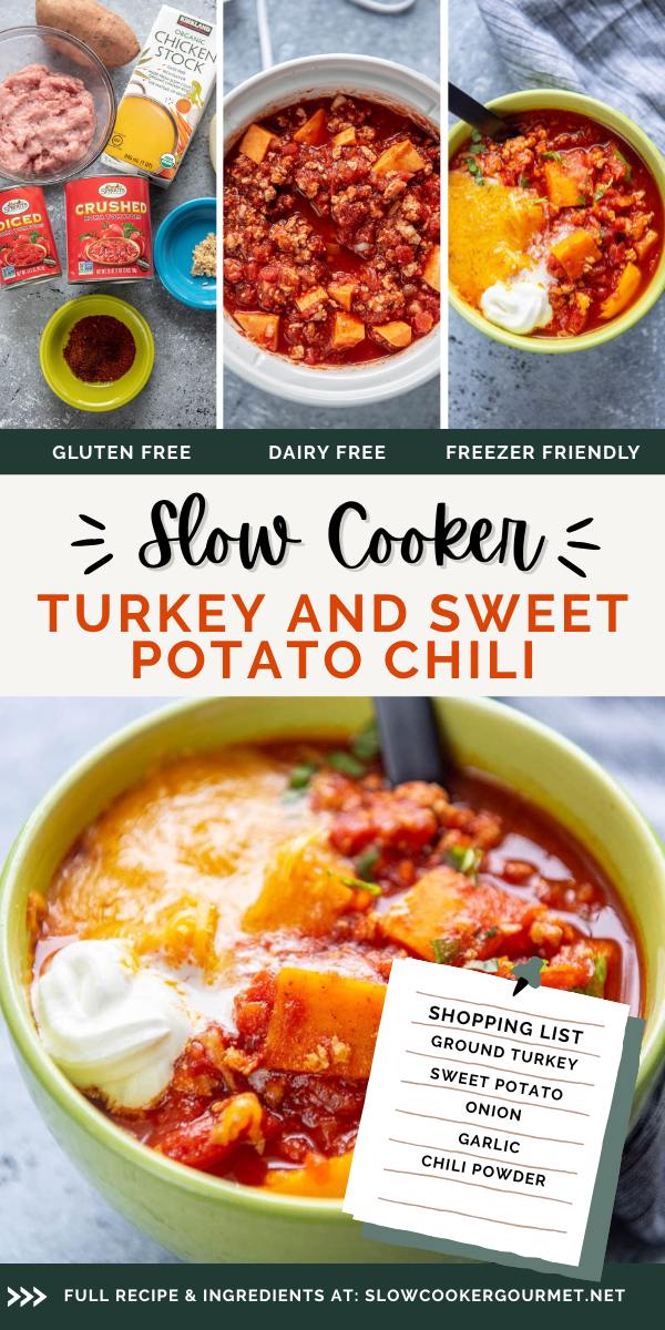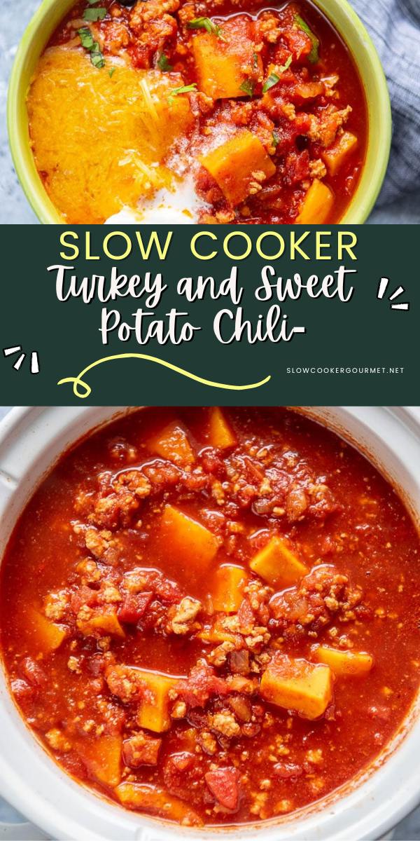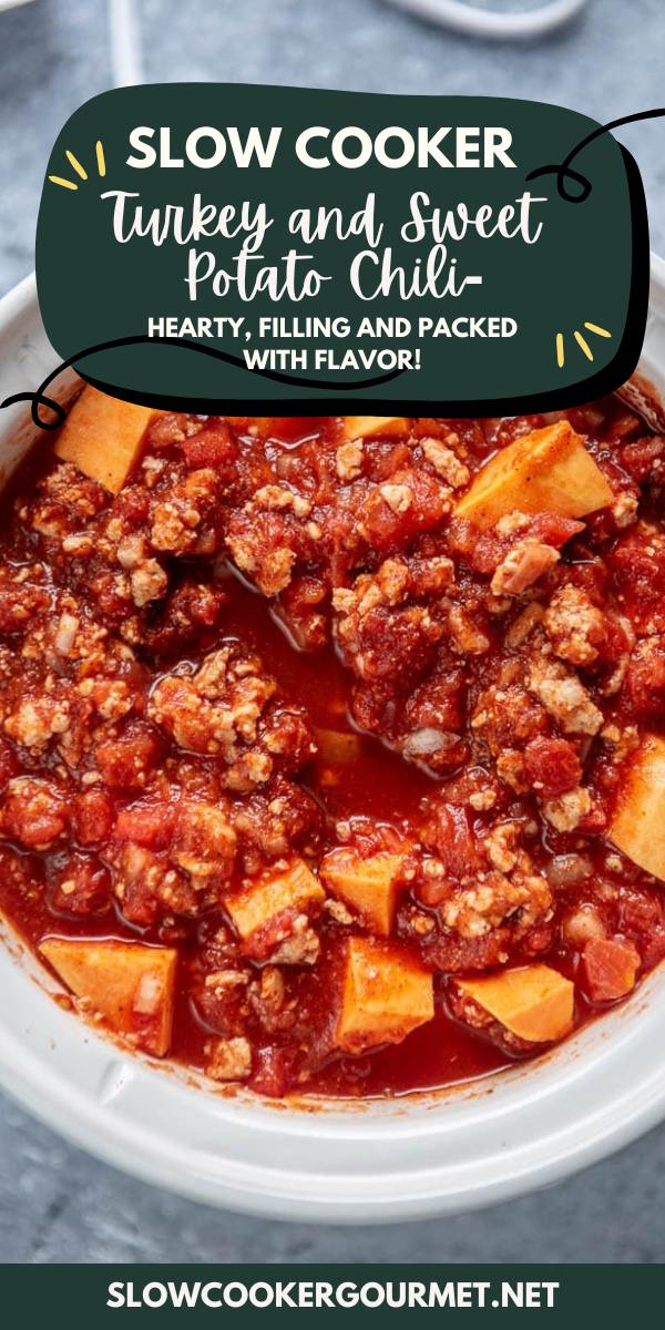 The perfect blend of spicy and sweet, all wrapped up in warm bowl of chili! This Slow Cooker Turkey Sweet Potato Chili is hearty, filling and packed with flavor.